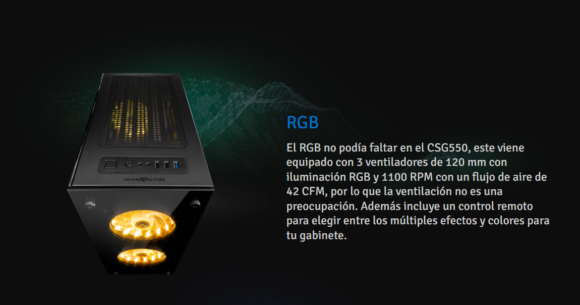 | Ventiladores incluídos: | 1x RGB 120mm – Trasero, 2x RGB 120mm – Frontales |